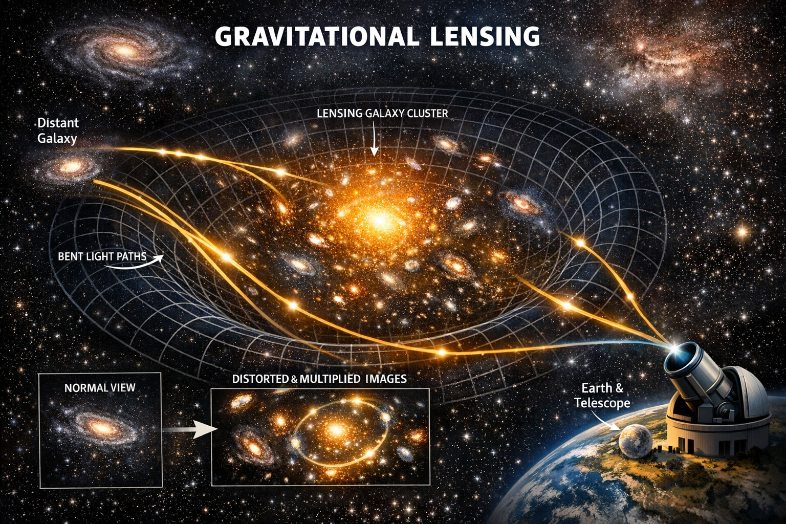 Alam Semesta Cahaya Dibengkokkan Semesta Ketika manusia menatap langit malam, yang terlihat hanyalah sebagian kecil dari isi alam semesta. Bintang, planet, dan galaksi hanyalah komponen…