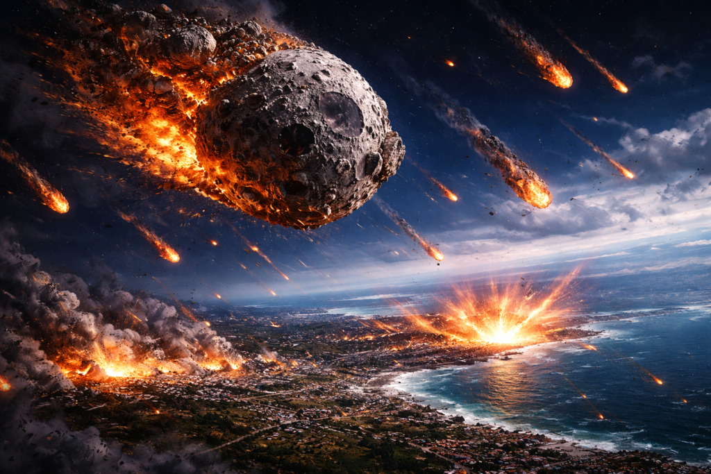 A different scenario involves the Moon not simply disappearing but being shattered by a massive impact. Although extremely unlikely, a collision with a very large asteroid could theoretically break the Moon apart.