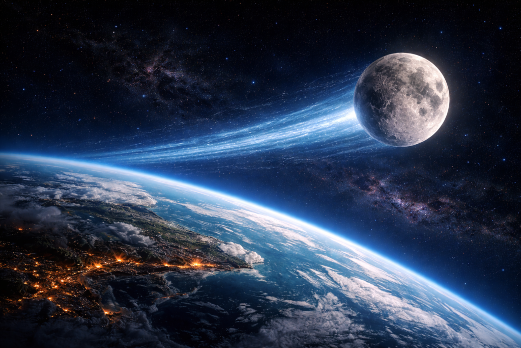 For billions of years the Moon has been Earth’s constant companion, orbiting at an average distance of about 384,000 kilometers. Although it often appears as nothing more than a bright disk in the night sky, the Moon plays a profound role in shaping the physical conditions of our planet. Its gravity influences oceans, stabilizes Earth’s rotation, and subtly controls the rhythm of many biological systems.